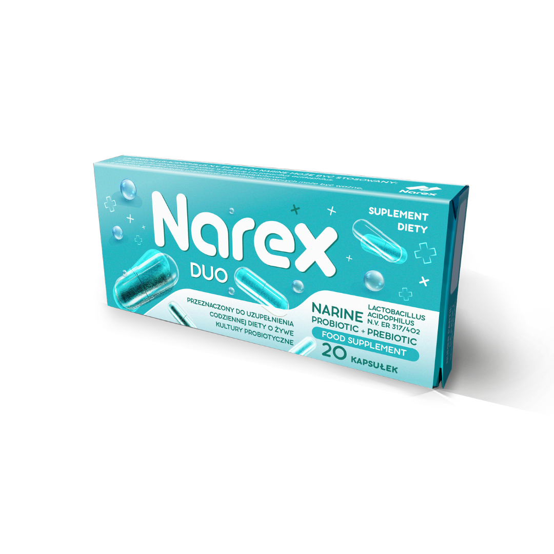 Probiotyk Narex odbudowuje florę jelitową i wzbogaca organizm w korzystne bakterie.