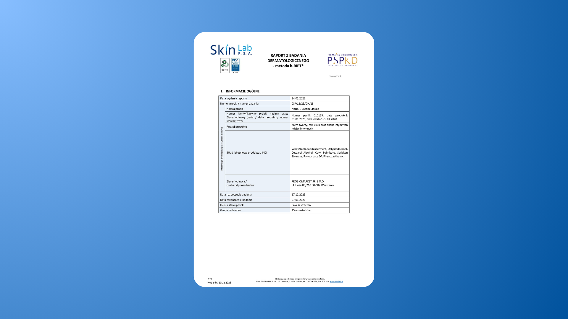 Zaświadczenie o Bezpieczeństwie Szczepu Narine